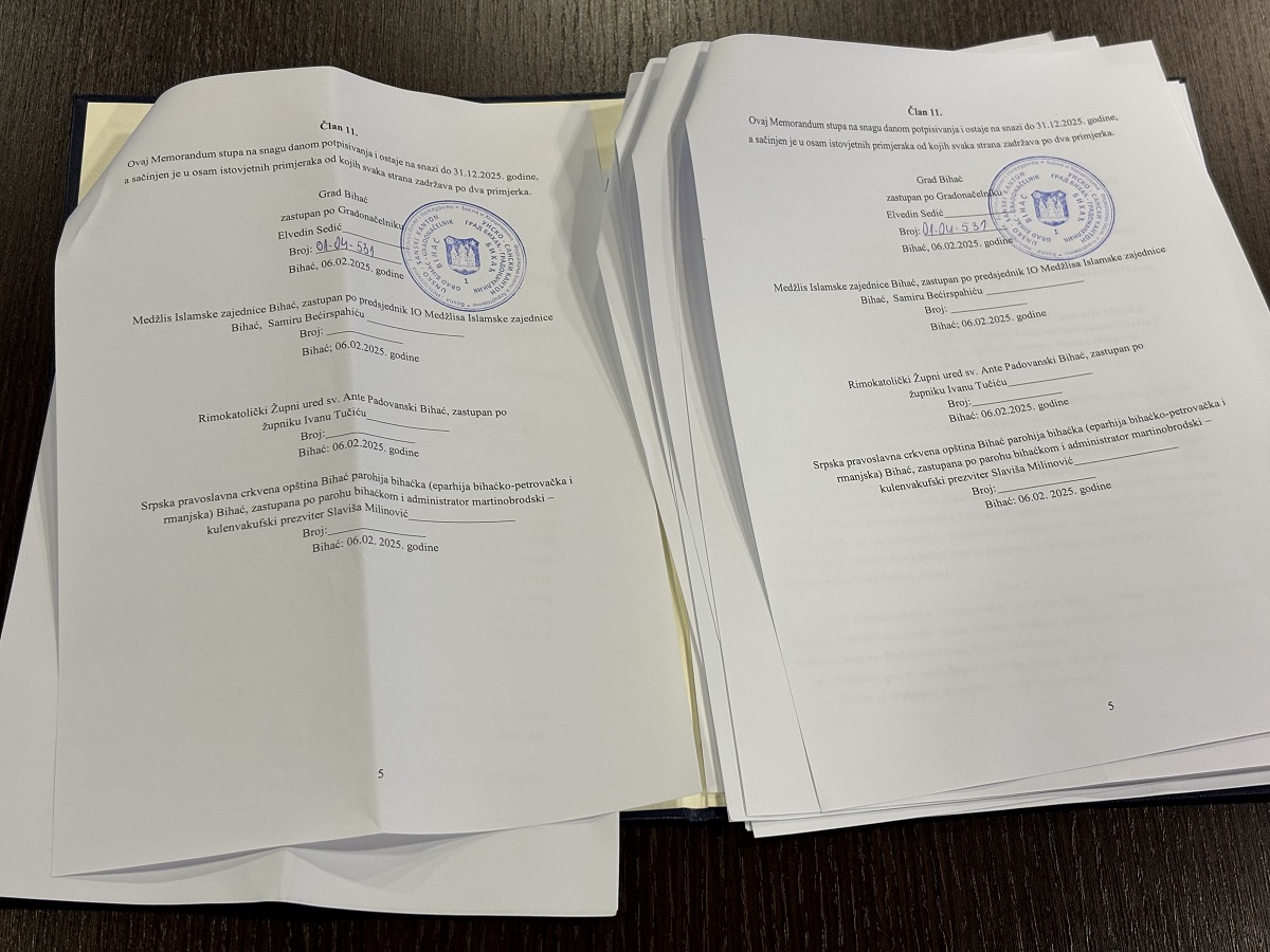 Grad Bihać je jedna od rijetkih lokalnih zajednica koja otvoreno i veoma dobro sarađuje sa svim vjerskim zajednicama na području grada. Danas je gradonačelnik Bihaća, Elvedin Sedić potpisao Memorandum o razumijevanju sa predstavnicima Medžlisa Islamske zajednice u Bihaću, Srpske pravoslavne crkve i Rimokatoličkog Župnog ureda sv. Ante Padovanskog u Bihaću.