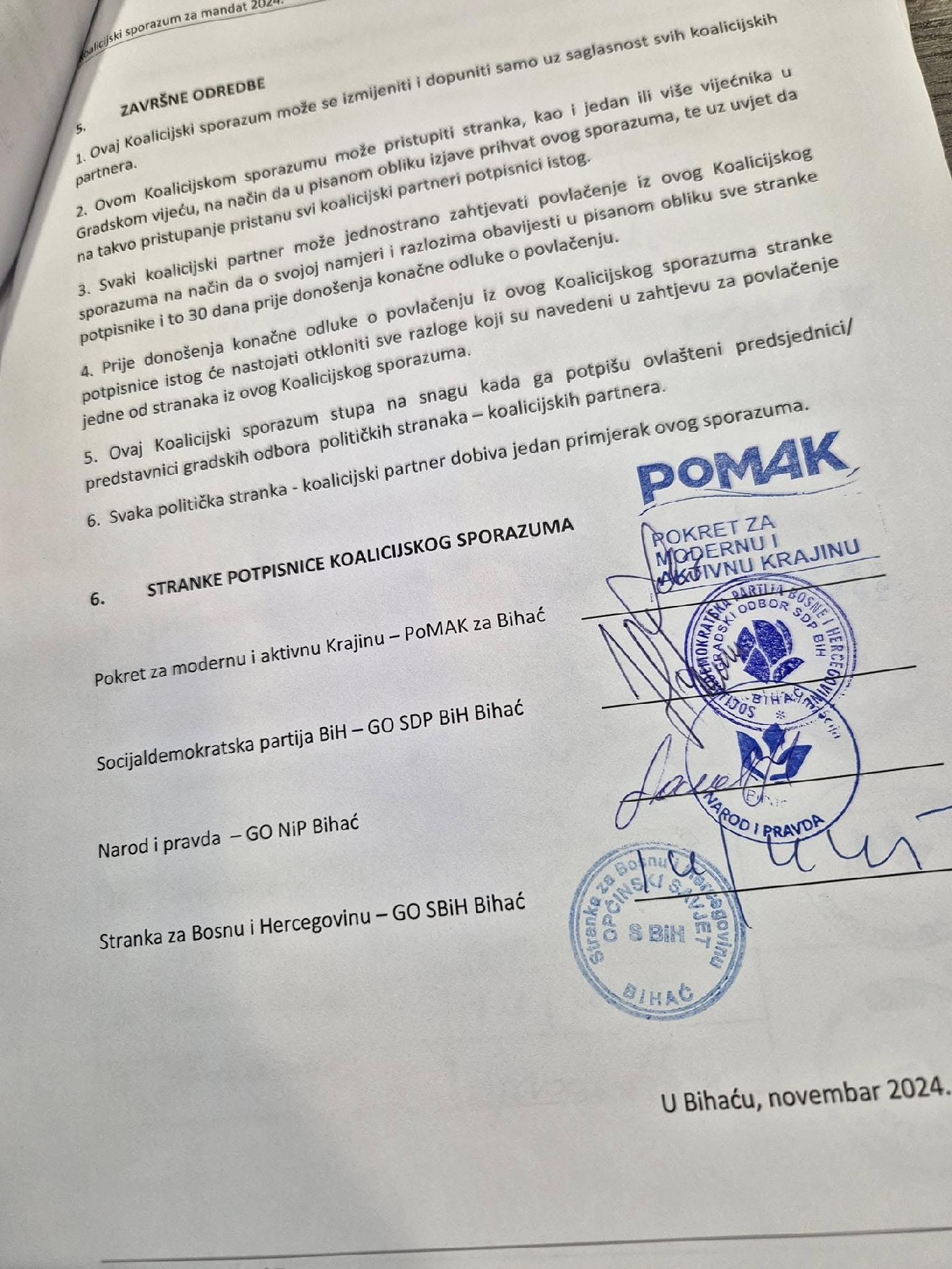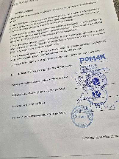 Potpisivanjem ovog sporazuma, politički akteri u Bihaću poslali su poruku